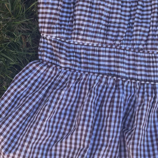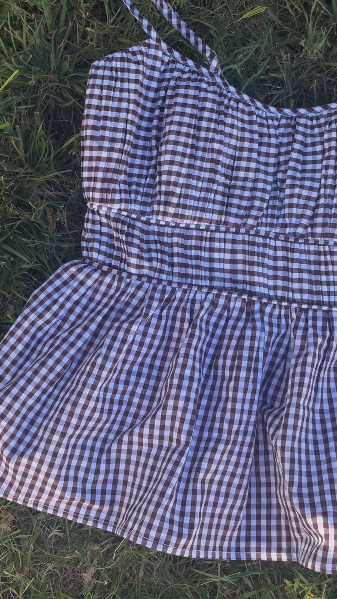 Effortlessly feminine, this gingham peplum top features a flattering square neckline, adjustable spaghetti straps, and a smocked bodice that cinches at the waist before flowing into a soft, flared hem.